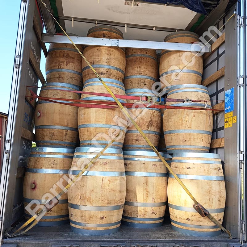 We鈥檝e loaded a truck with used oak barrels 225L, ready for a new life.