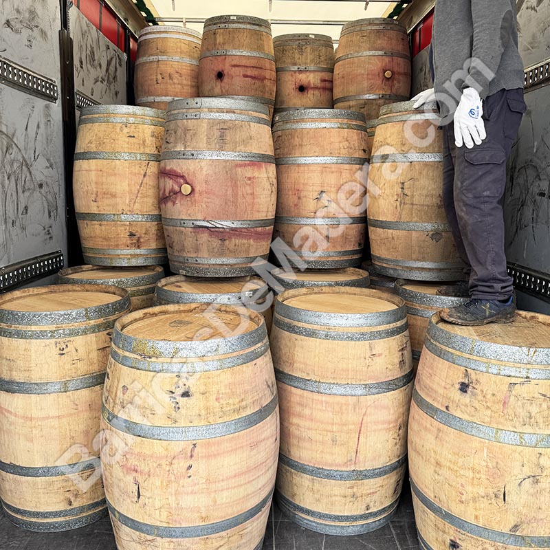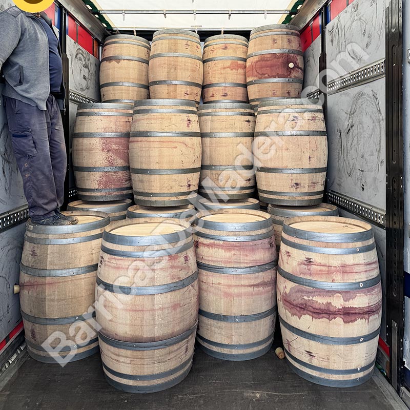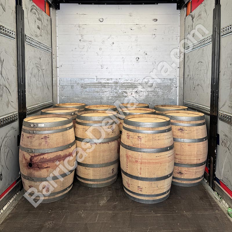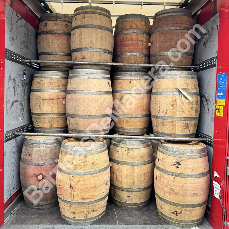 Hoy hemos cargado un tren de carretera con 240 barricas usadas de 225L.
