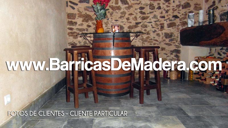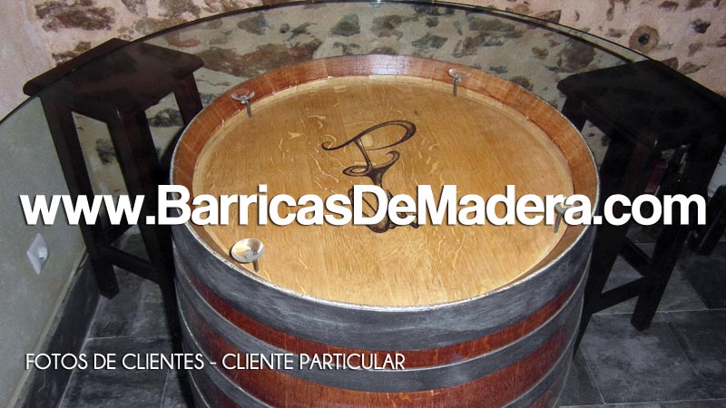 Nos envían estas fotos de una barrica que nos compraron hace algunas semanas. Desde aquí queremos felicitar a nuestro cliente por el resultado y agradecer que haya querido compartir estas fotos con nosotros. Él mismo ha tratado la madera para darle el color deseado y ha colocado unos soportes metálicos para que soporte el vidrio para utilizar la barrica como mesa en su bodega.